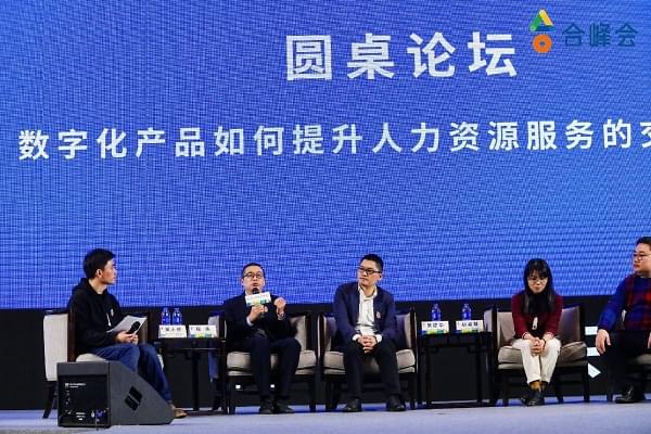 在圓桌論壇環節,金蝶程偉老師(左二)與幾位人力資源行業專家、大咖及現場數百位觀眾圍繞《數字化產品如何提升人力資源服務的交付能力》的主題,共同論道“數字化產品如何提升人力資源服務的交付能力”。