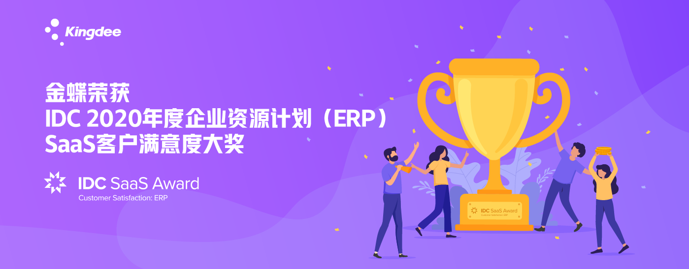 根據IDC SaaSPath(2020)調查(IDC #US46933620)評分,金蝶躋身得分最高的SaaS ERP應用市場供應商行列,并成為唯一榮獲IDC 2020年度 SaaS客戶滿意度大獎的中國SaaS廠商。