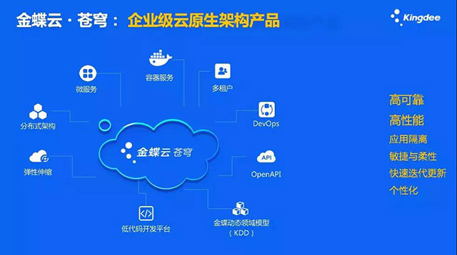在平臺方面,金蝶云·蒼穹作為中國首款基于云原生架構的企業級云服務平臺,採用了分布式架構,獨創了KDDM云端動態領域模型,支持云端個性化定制,通過低代碼、輕量級的開發平臺,能夠大幅縮短大企業創新研發周期。在架構方面,金蝶云·蒼穹,以敏捷的前臺實現智慧賦能,以共享的中臺實現智能運營,以創新的后臺實現數據驅動,基于中臺架構思想,不僅使人、企業、設備都能通過“數字孿生”實現“企業數字化”,更實現全行業互聯互通,達成“產業平臺化”。