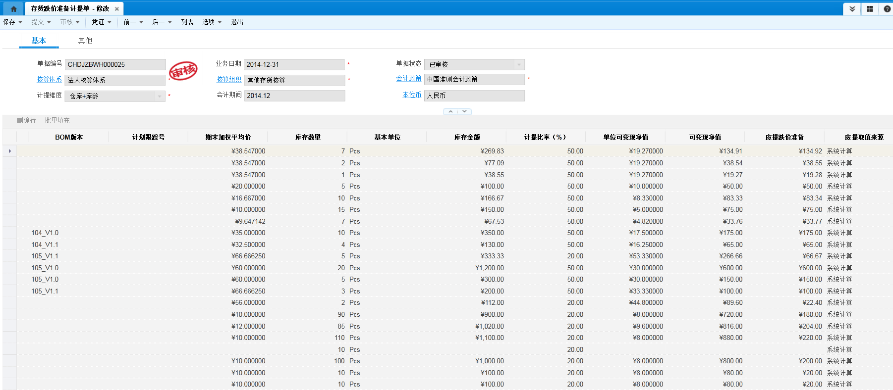 存貨跌價準(zhǔn)備是指由于存貨遭受毀損、全部或部分陳舊過時或銷售價格低于成本等原因,使存貨成本不可以收回的部分,應(yīng)按單個存貨項目的成本高于其可變現(xiàn)凈值的差額提取,并計入存貨跌價損失。一般在中期期末和年度終了,成本會計會依據(jù)存貨賬齡、可變現(xiàn)凈值、企業(yè)計提比率進行手工計算跌價準(zhǔn)備并記賬。 存貨跌價準(zhǔn)備計提功能的推出,實現(xiàn)存貨跌價準(zhǔn)備計提自動化,提升成本會計工作效率。
