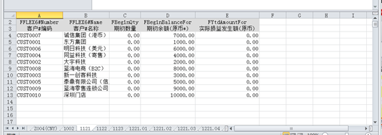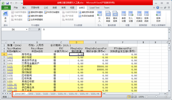 引出后科目初始數據顯示在第一個工作表,并分科目顯示核算維度初始數據。