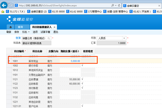 第五步:在系統中可以查看到上面引入的科目初始數據。