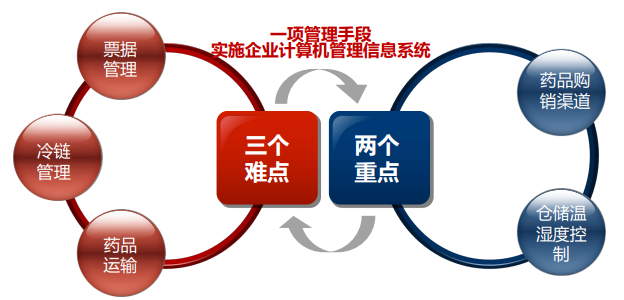 全球全面推進一項管理手段、強化兩個重點環節、突破三個難點問題 新版GSP吸收了供應鏈管理的觀念;增加了計算機信息化管理、倉儲溫濕度自動監測、藥品冷 鏈管理等管理要求;引入了質量風險管理、體系內審、設備驗證等新的管理理念和方法,對 于藥品經營流通企業的信息化管理、冷鏈管理和人員要求等軟硬件方面都提出了許多新規定, 原有規定也做了許多調整。