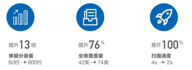 ●利用手機(jī)解析的輕藕合通道,對業(yè)務(wù)單據(jù)進(jìn)行分制呈現(xiàn),提升大數(shù)量的承載容量,單據(jù)分錄可達(dá)到2000行。